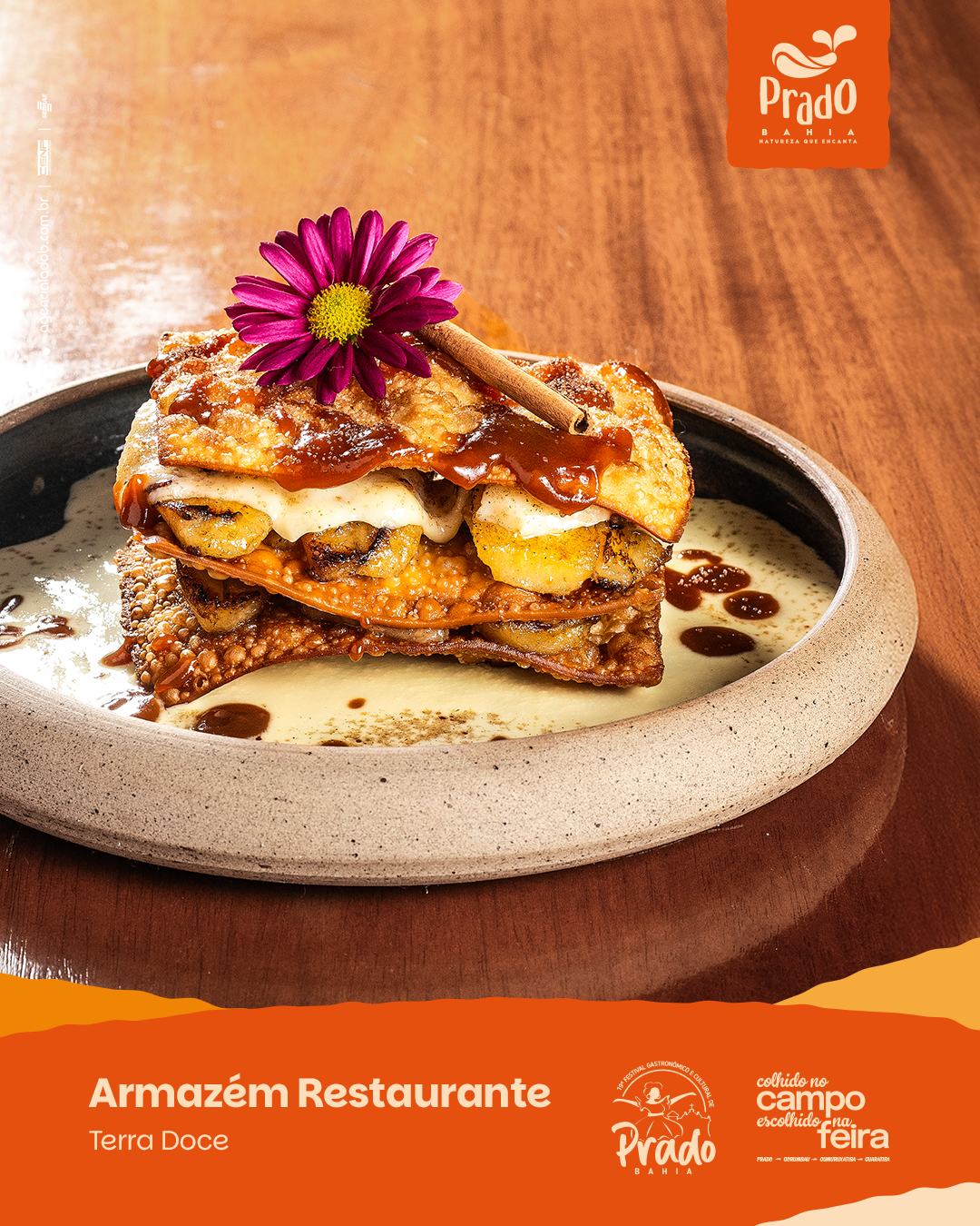 Inspirada no clássico pastel de feira, essa sobremesa transforma a tradição em afeto. Folhas crocantes de massa frita se abrem para acolher a banana dourada na manteiga e a cremosidade do queijo de tacho, envolvidos pelo calor do toffee de canela. Finalizada com açúcar e canela polvilhados, é como caminhar pela feira e encontrar, em cada mordida, a doçura simples das memórias que aquecem o coração.