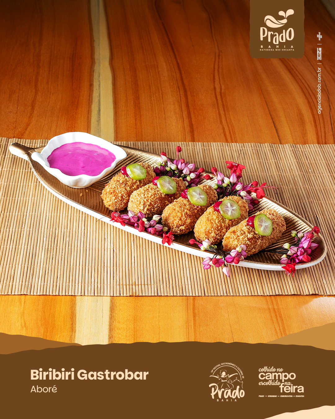 Gastronomia Petisco, Prado PETISCO – ABORÉ Lanche, Prado LANCHE – ALEGRIA DO FREGUÊS Drink, Prado DRINK – BENDITA CANA Prado, Sobremesa SOBREMESA – ABACAMISÚ Prado, Sobremesa SOBREMESA – JULITA Prado, Prato Principal PRATO PRINCIPAL – RIBEIRÃO